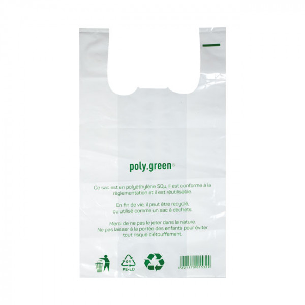 Cumplen con la normativa de 2016 y llevan la leyenda "Esta bolsa está fabricada en polietileno de 50 micras, cumple con la normativa y es reutilizable. Al final de su vida útil, puede reciclarse o utilizarse como bolsa de basura. Por favor, no la tire. Manténgala fuera del alcance de los niños para evitar cualquier riesgo de asfixia."