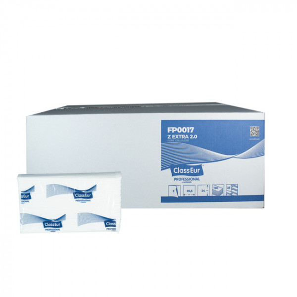 Estas toallas de mano plegadas en Z están fabricadas con celulosa blanca pura, un material de gran calidad que aporta suavidad, resistencia y una excelente capacidad de absorción. Con sus 2 capas de 17 g/m² cada una, permiten un secado eficaz: ¡bastan 2 hojas para secar ambas manos!