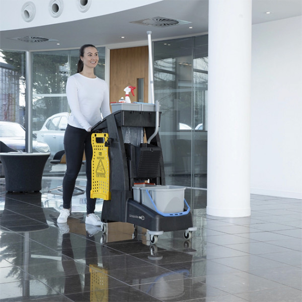 ¡Es la herramienta compacta ideal para hoteles, restaurantes, empresas de limpieza, industria y autoridades locales! Se trata de un carro de limpieza profesional robusto, ligero y duradero.