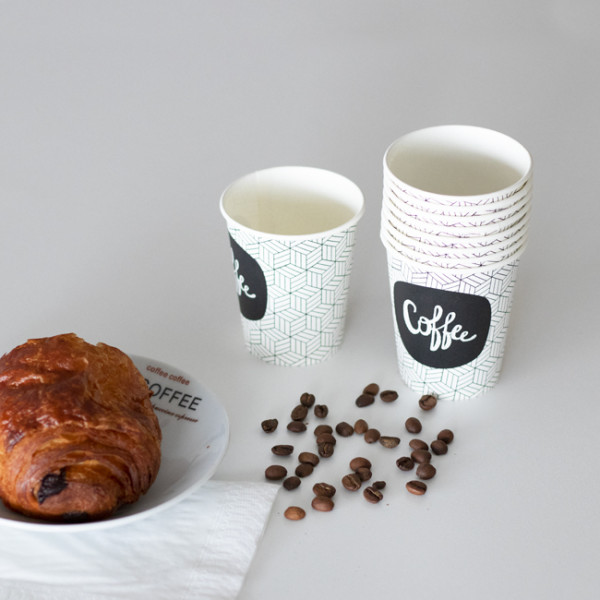 Nuestros vasos de papel de pared simple tienen una capacidad de 17 cL (15 cL útiles) hasta el tope. Son perfectos para disfrutar de bebidas calientes (café, té, chocolate, leche...) o frías (zumo de frutas, sopa fría, agua...). Gracias a su revestimiento interior, son 100% impermeables. Están decorados con modernos diseños geométricos en blanco y negro. Una vez utilizados, nuestros vasos de cartón blanco son reciclables.
