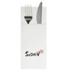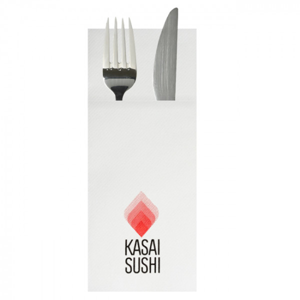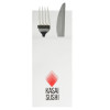Estas servilletas personalizadas de tejido no tejido suave tienen un pliegue especial llamado bolsillo o canguro que permite deslizar los cubiertos en su interior. Por ello, se recomiendan a los profesionales de la restauración: caterings, restaurantes, etc. Además de original, su diseño plegado es muy práctico y permite preparar las bolsas de cubiertos antes de servirlos: ¡un ahorro de tiempo garantizado!Introducir los cubiertos en el bolsillo con forma también te ayudará a evitar que las servilletas salgan volando cuando montes las mesas en la terraza.