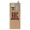 Las servilletas blandas kraft personalizables se presentan en cajas de 640 unidades (es decir, 20 paquetes de 32 servilletas). Se imprimen con tintas al agua.