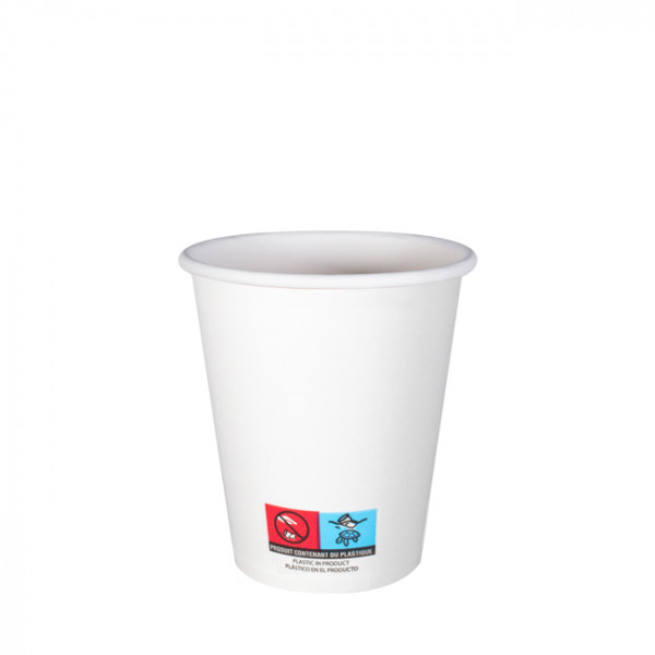 De conformidad con décret n°2019-1451 publicada el 24 de diciembre de 2019 en relación con la Directiva Européenne, los fabricantes de vasos que contengan plástico están obligados a mostrar un logotipo de "producto que contiene plástico" y lo hacen desde 3 de julio de 2021. Nuestros vasos cumplen esta normativa.