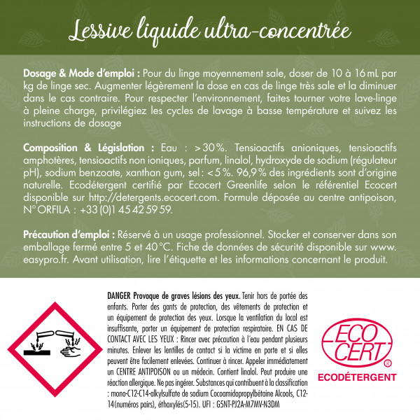 Detergente líquido ultraconcentrado Ecocert para lavanderías, tintorerías y lavanderías autoservicio