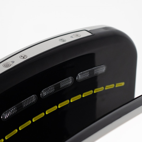 Incluye un filtro HEPA de gran tamaño, fácil de reemplazar, que captura el 99,99% de bacterias y virus del aire antes de secar las manos con aire filtrado. Cuando la temperatura ambiente supera los 25 °C, la iluminación de las boquillas cambia de rojo a azul, indicando que la resistencia calefactora se desconecta automáticamente.
